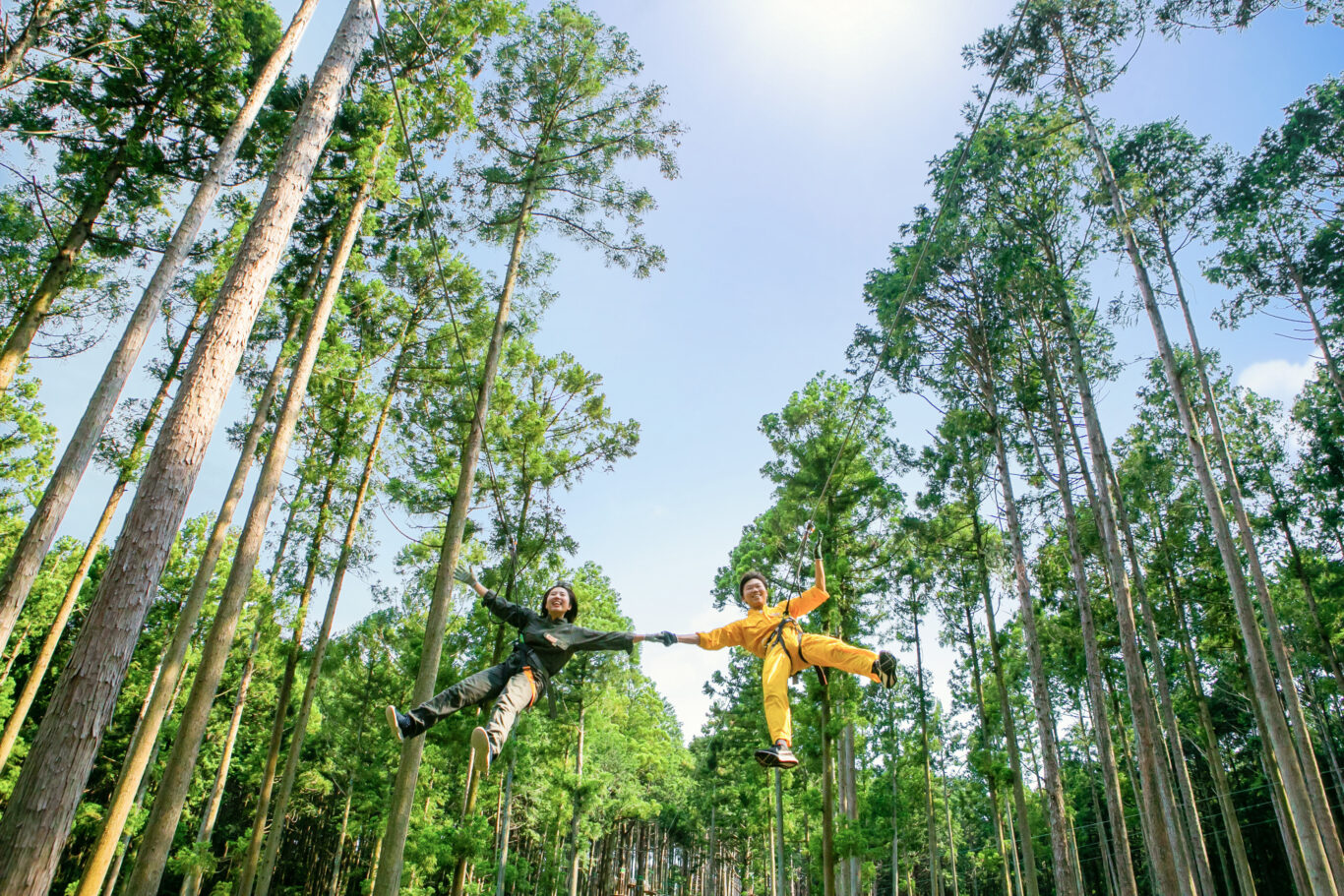 菰野町の大自然で、ジップラインや四輪バギー、巨大トランポリンなど心がオドル森遊びが盛りだくさん!子どもから大人まで楽しめるアドベンチャーパークです。