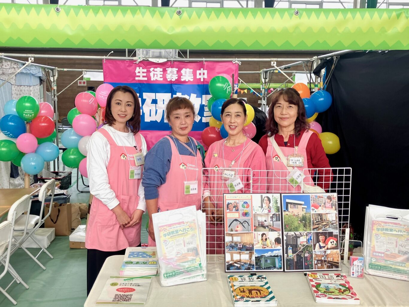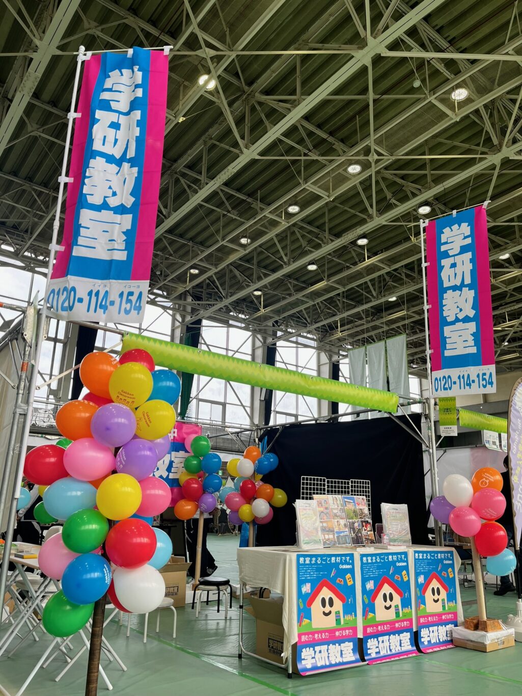 子ども達に大人気の風船をお配りします。幼児教材と小学生教材の無料体験コーナーもあります。