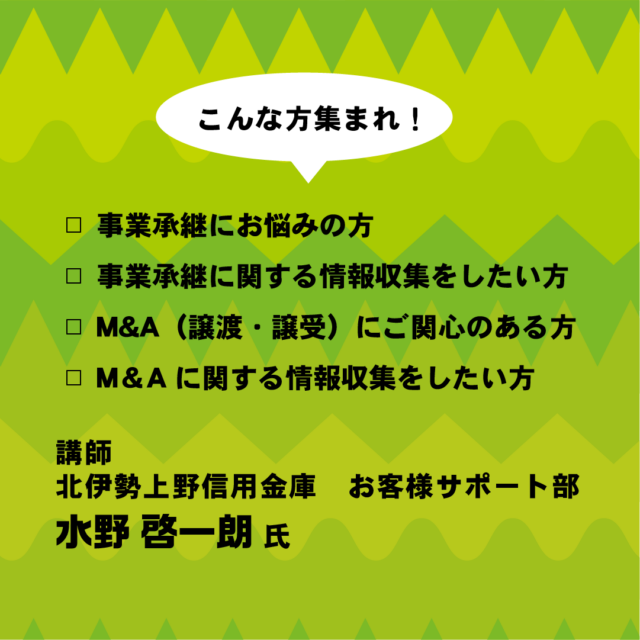 共に菰野町の事業承継課題を解決するため、事業承継セミナーを開催致します。